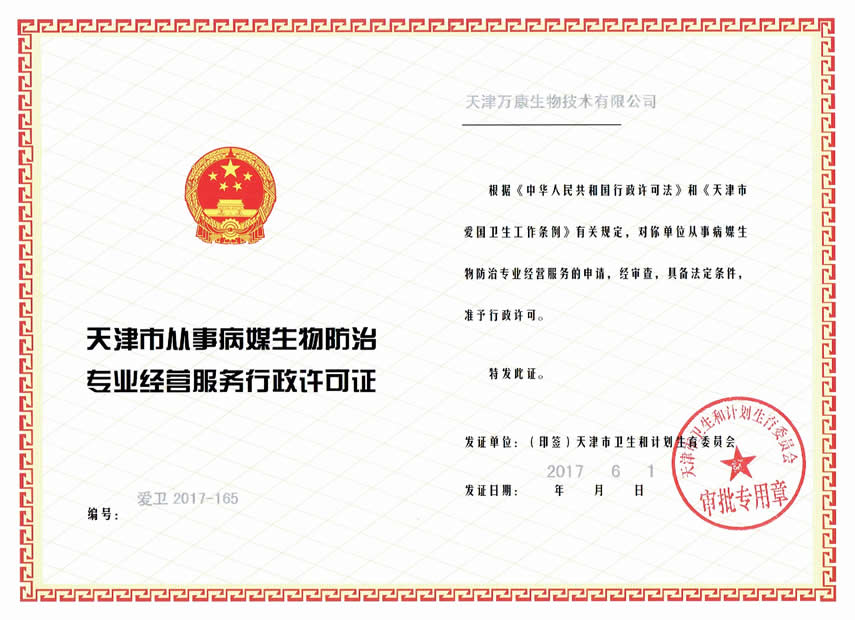 天津萬康生物技術有限公司是經天津市行政中心認證、工商注冊的從事殺蟲滅鼠、衛生消毒、媒介監測及藥品批發零售的******PCO(有害生物防治)公司,自成立以來一直致力于生活環境、自然環境的改善、保護和管理,堅持技術創新走可持續發展道路。公司聘請多名專家和資深顧問,為客戶提供******的解決方案,同時得到了中國農業大學、中國農業科學研究院、天津出入境檢驗檢疫局、西南大學、天津農學院等相關專家教授的大力支持和指導。我們堅持“誠實、守信、安全、環保”的服務宗旨,所用器械均為世界優質產品,所用藥物均系國家藥檢部門和衛生防疫部門批準的安全、低毒的城市衛生用藥,并根據具體作業環境和防治對象情況變化,制定具體防制方案,保證******的防治效果和人體安全。目前,已為賓館、飯店、企業、醫院、機關、學校、博物館、娛樂場所、寫字樓、倉庫、住宅小區、家庭等場所提供了優質的有害生物防治服務,已得到了社會各界的普遍接受和認可。服務的理念:“以人為本,誠信服務,合理收費,拒絕暴利”。服務的目標:“客戶的滿意是我們永遠追求的目標”!服務的使命:“平衡生態,綠色環保”